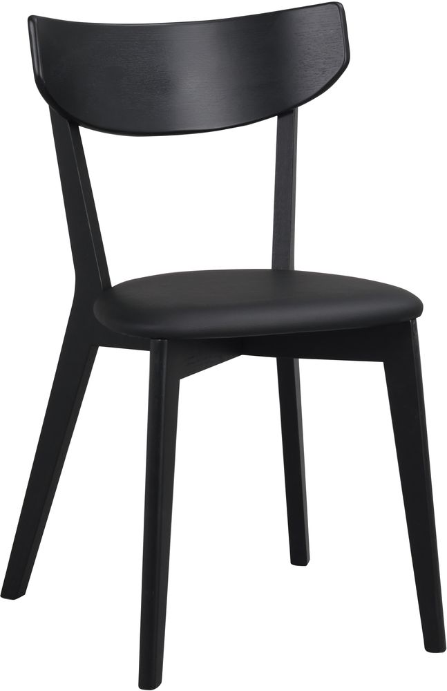Hannah är en stilren stol med sits i svart konstläder. Finns i denna svartlackade variant, samt oljad ek, whitewash och vitlackad.