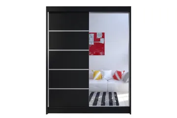 Estella Garderob 120 cm Skjutdörrar Smal Spegel, Svart/Spegel