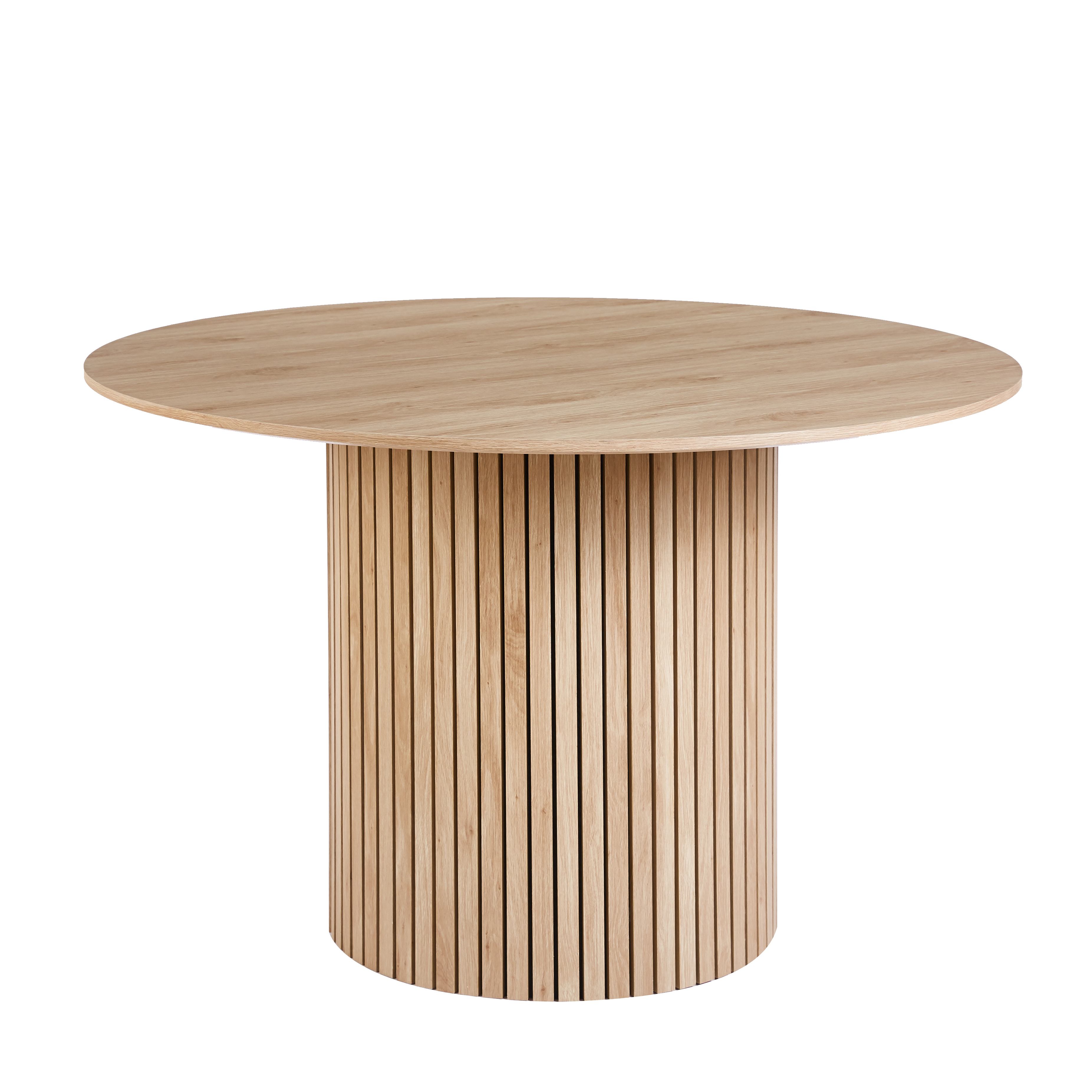 Matgruppen Ludvig & Brandon kombinerar nordisk elegans med naturliga material och tidlös design. Det runda Ludvig matbordet har en slimmad form med bordsskiva i MDF med ekfoliering och ett matchande underrede i trä, vilket ger ett harmoniskt och modernt uttryck. Den generösa diametern på 120 cm gör bordet idealiskt för 4–5 personer och skapar en inbjudande plats för måltider och samvaro.