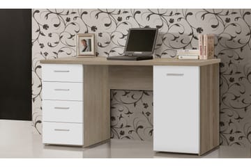 Jahnyia Skrivbord 120 cm med Förvaring 2 Lådor, Vit/Ek