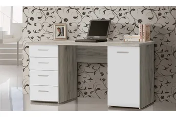 Bowlee Skrivbord 145 cm med Förvaring Skåp + 4 Lådor + Hylla, Grå/Vit