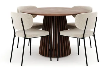 Peyra Runt Matbord 120 cm med 4 Gemmiano Stolar, Valnöt