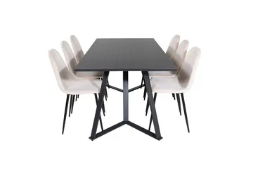 Polar Matgrupp 180 cm Rektangulär med 6 Velvet Deluxe stolar, Svart