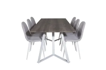 Marina Matgrupp 180 cm Rektangulär med 6 Velvet Deluxe stolar, Ljusgrå