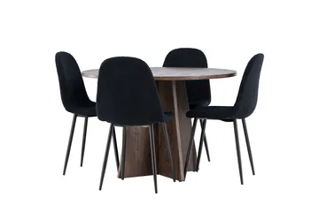 Bootcut Matgrupp 110 cm Rund med 4 Polar stolar, Mocca/Svart