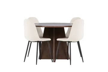Olivia Matgrupp 110 cm Rund med 4 Agnes stolar, Beige/Vit