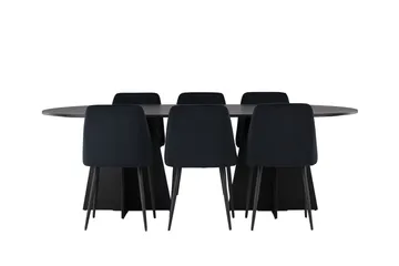 Isolde Matgrupp 180 cm Oval med 4 Evelina stolar, Svart