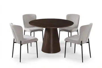 Siena Matgrupp runt 110 cm Valnöt med 4 Elsie Matstolar, Valnöt/Grå
