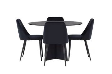 Plaza Matgrupp 100 cm Rund med 4 Velvet stolar, Svart