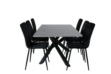 Dipp Matgrupp 180 cm Rektangulär med 6 Velvet Deluxe stolar, Svart