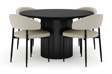 Uppveda Matbord 120 cm Rund med 4 st Jamna Matstolar, Svart/Vit