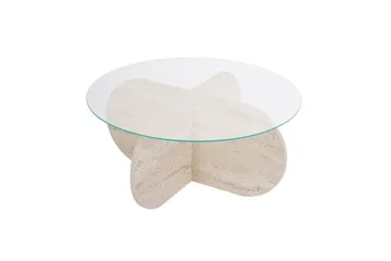 Soffbord Aeris 75 cm med Glasskiva, Travertin / Transparent