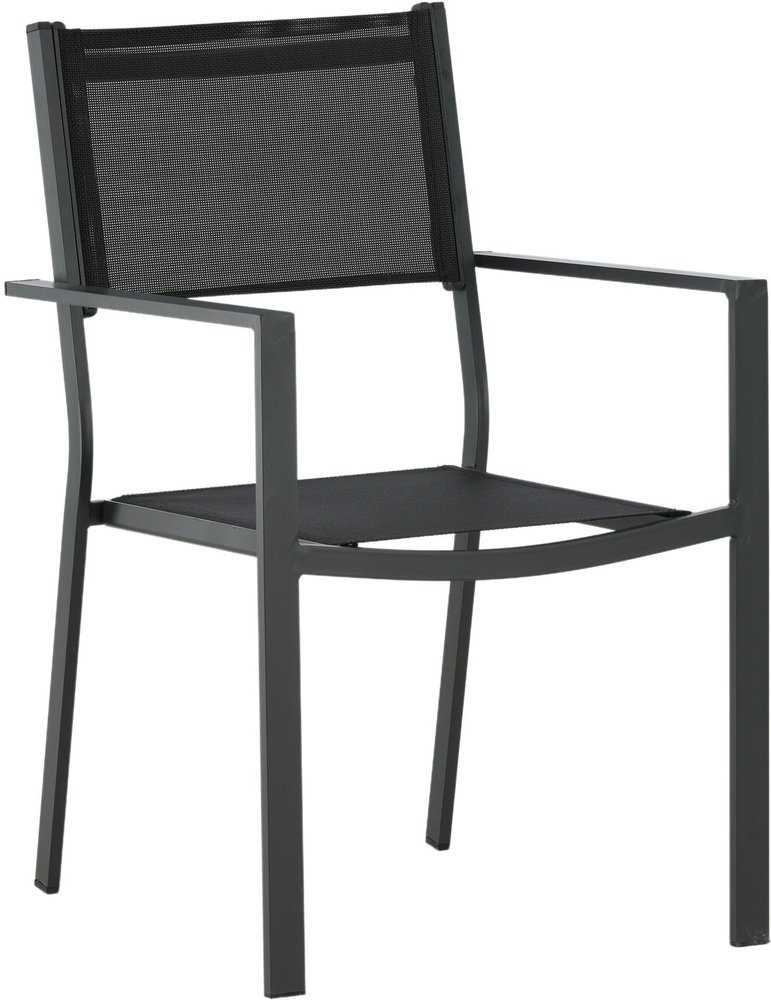 Ge din uteplats eller altan ett lyft med denna matgrupp i stilren svart och naturton. Det stora matbordet på 205x90 cm har en slitstark bordsskiva i naturfärgad polywood och ben i svart aluminium, en tålig kombination som står emot väder och vind. Med sex stapelbara stolar i svart aluminium och vädertålig textilene skapas en funktionell och snygg matplats som passar lika bra för sommarens vardagsmiddagar som festliga grillkvällar.