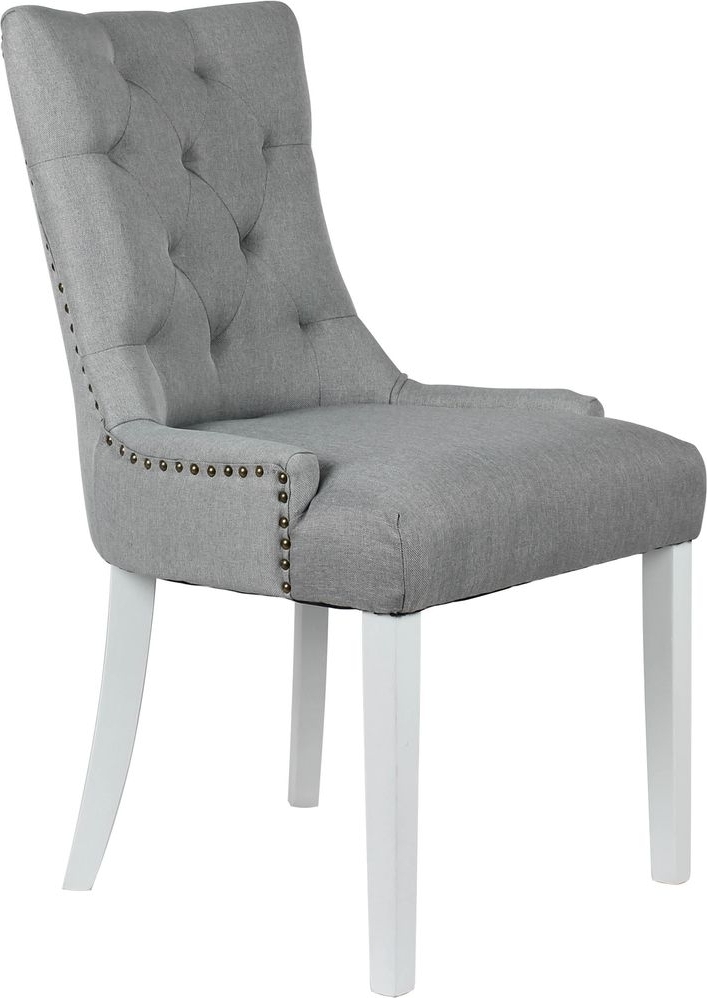Medföljer gör också 4 st Tuva matstolar i ett slitstarkt grått tyg med vitlackade ben. Stolen är välarbetad och gedigen med en vintage-stil!