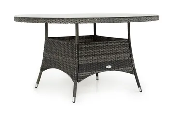 Marcus Stort Runt Matbord Utomhus 140 cm – Utebord i konstrotting med glasskiva för Uteplats och Trädgård, Grå