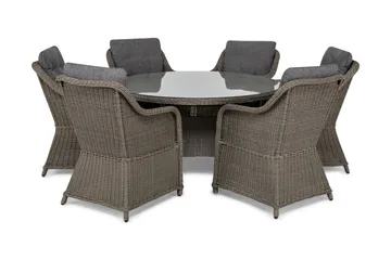 Marcus Matgrupp 140 Rund + 6 Fåtöljer m Dyna, Natur