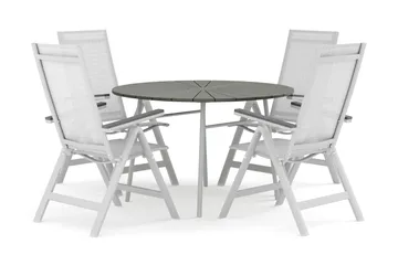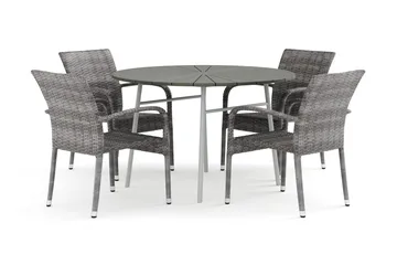 Marcus utomhus matgrupp 160x90 cm med 4 Marcus Light utefåtöljer, Grå