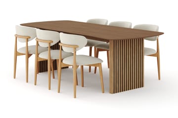 Richeto Matbord 180 cm med 6 st Jamna Karmstolar, Brun