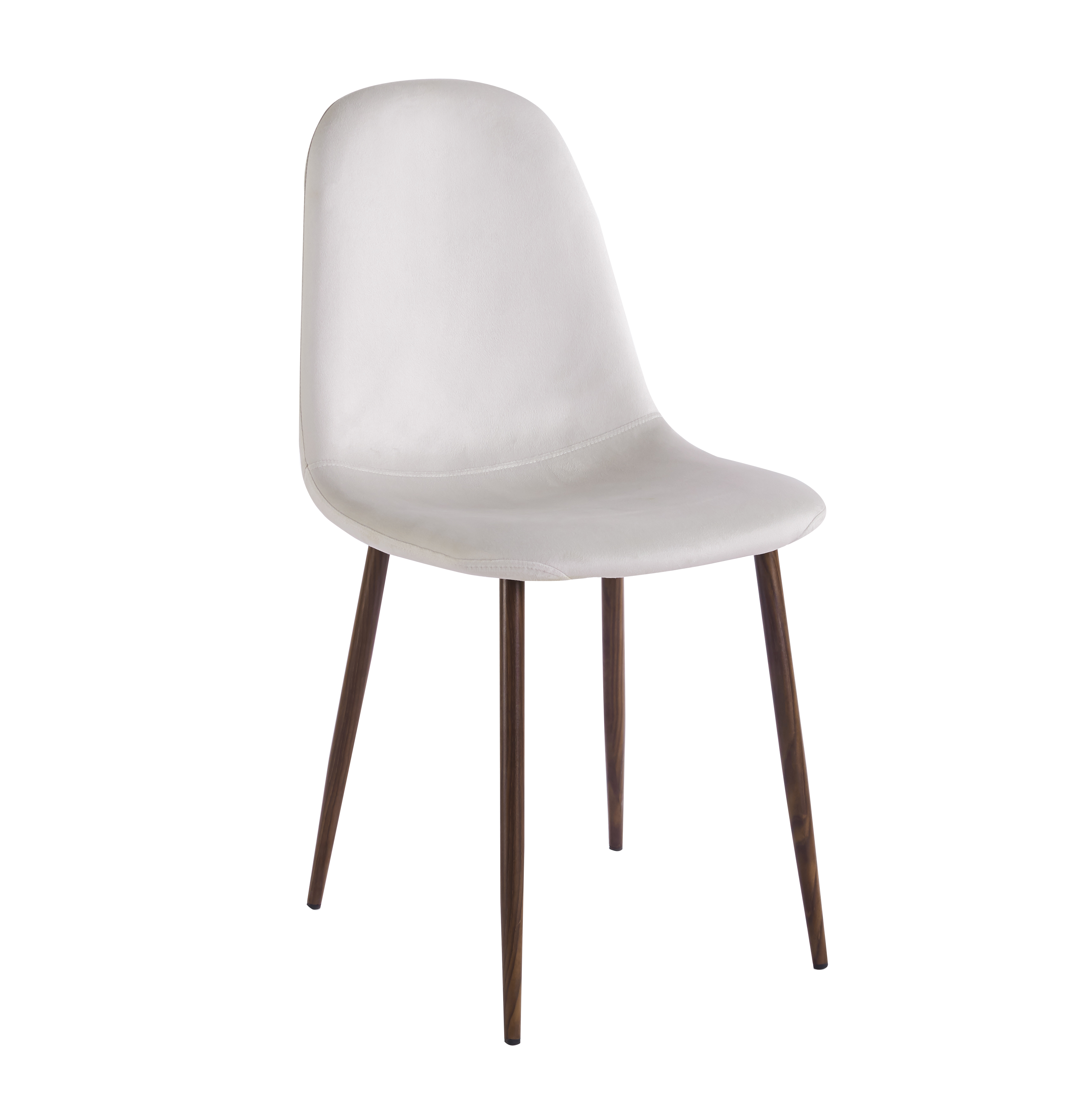 De fyra Alfred matstolarna kompletterar bordet med en mjuk och inbjudande design. Stolarna är klädda i elegant beige sammet som ger en behaglig sittupplevelse, medan benen i mörkbrun valnötsfinish knyter samman gruppens färgtoner på ett harmoniskt sätt. Den bekväma sitsen och det diskreta formspråket gör Alfred till ett utmärkt val för både vardag och fest.