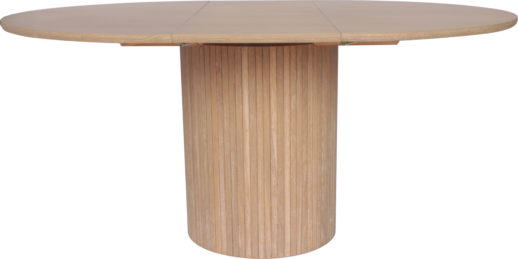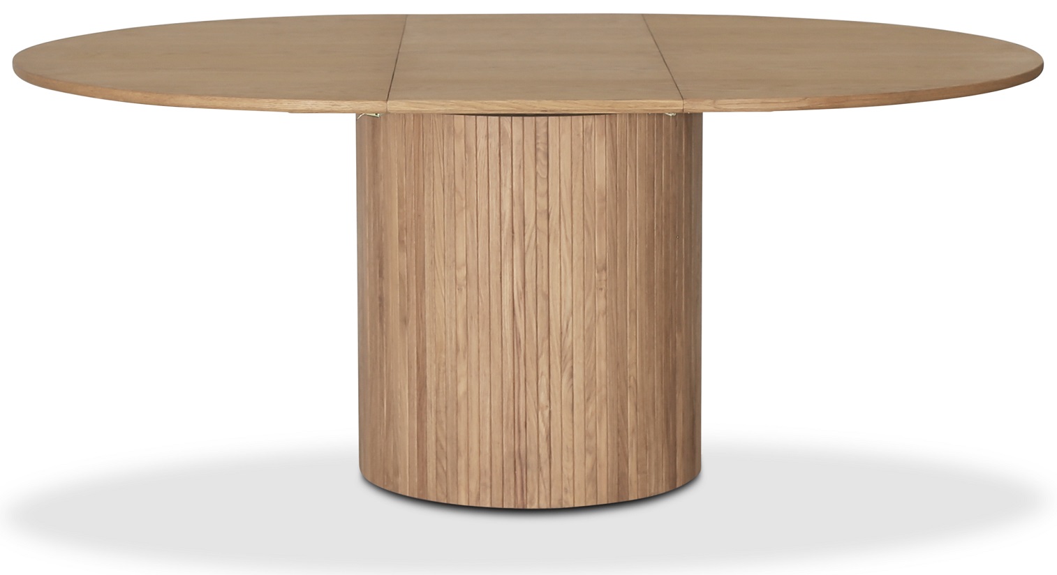 Matbordet är Ø115 cm i diameter, det ingår en tilläggsskiva som förlänger bordet till 160 cm. Iläggsskivan är vikbar och förvaras i bordets mittdel när den inte används. Bordet är byggt både i massivt trä och Fanèr.