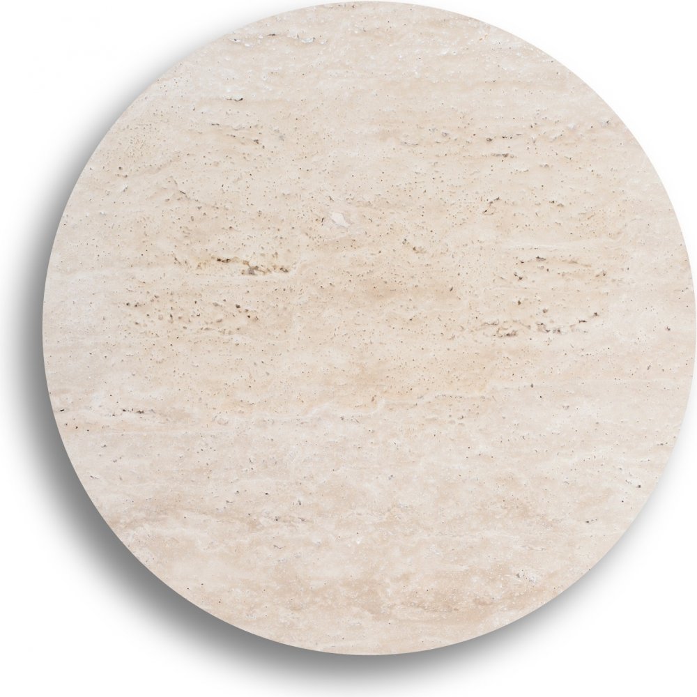 Ett snyggt soffbord med en lyxig modern känsla. Underredet är tillverkat av matt svart metall och bordsskivan är av äkta ljus kalksten, Travertin.