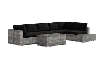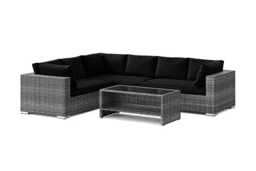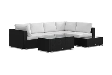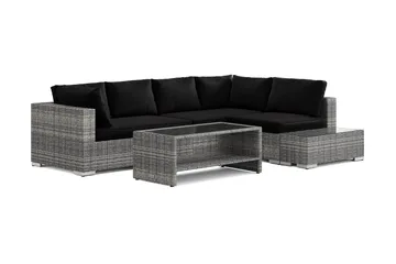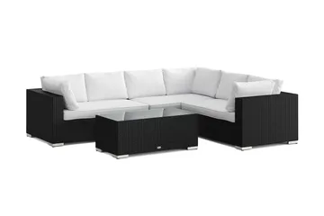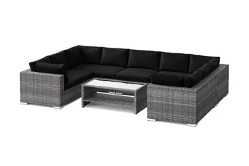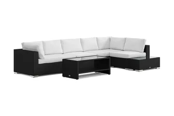 Bahamas L-formad utesoffa höger, 6-sits med bord, Svart