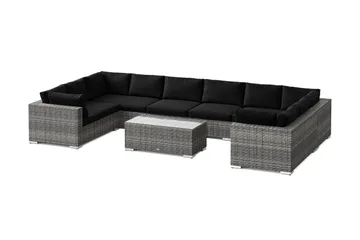 Bahamas utesoffa 5-sits med bord och hylla, Svart