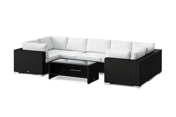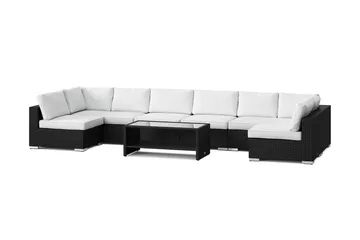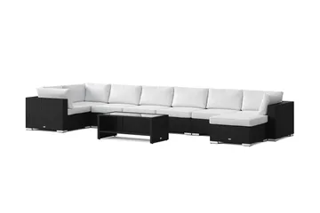 Bahamas U-formad utomhus loungegrupp med öppet avslut, 8-sits med bord och hylla, Svart