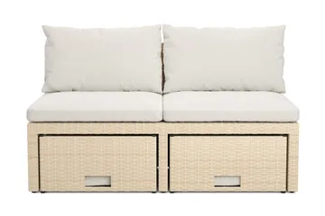 Bahamas Liten Balkongsoffa med dynor och pallar i konstrotting, Beige