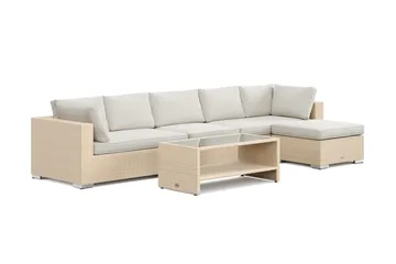 Bahamas utomhus divansoffa 6-sits med vändbar divan och bord med hylla, Beige