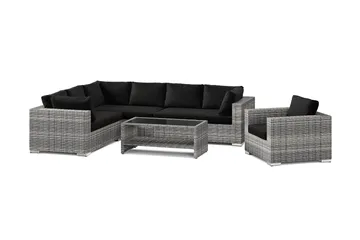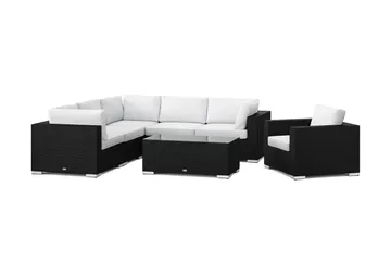 Bahamas utomhus hörnsoffa 6-sits vändbar med fåtölj och bord med hylla, Svart