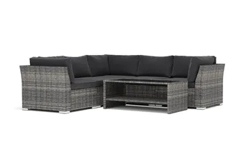 Bahamas utomhus hörnsoffa 5-sits vändbar med öppet avslut och bord med hylla, Grå