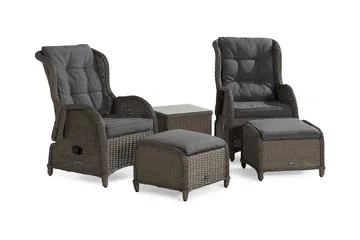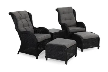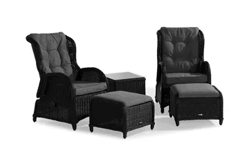 Marcus Caféset med 2 Reclinerfåtöljer Utomhus m Dyna, Svart
