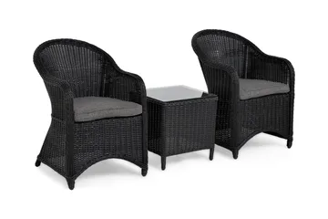 Marcus Caféset med 2 Fåtöljer m Dyna, Svart
