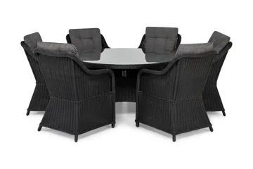 Marcus Matgrupp 200 + 6 Fåtöljer m Dyna, Svart