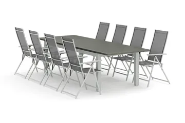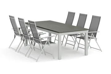 Monaco utomhus matgrupp förlängningsbart 210/310x90 med 8 Sanna positionsstolar, Vit/Grå