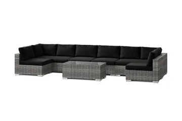 Bahamas U-formad utomhus loungegrupp med öppet avslut, 8-sits med bord, Grå