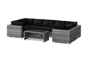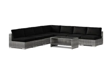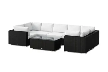Bahamas L-formad utesoffa vänster, 7-sits med bord, Svart