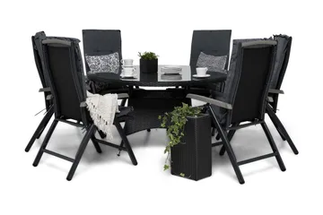 Thor Matgrupp Utomhus 140x90 + 6 Jenny Fåtölj Ställbar m Dyna, Svart/Grön