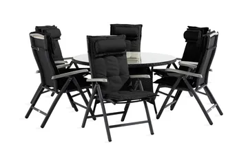Thor Matgrupp 140 Rund + 6 Monaco Positionsstol m Dyna, Svart/Grå