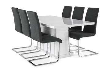 Cibus Matgrupp 180 cm med 6 Stolar, Vit/Svart Konstläder