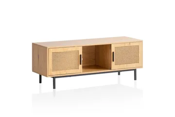 Lowboard Wohnling Melaminbelagd MDF-ekoptik, rottingfront, 2 lådor, metallben Modern